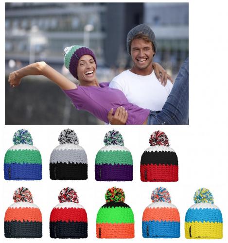 3-farbige Häkelmütze mit Pompon