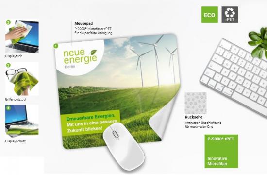 Mousepad und Microfasertuch 4in1 aus recycelter Microfaser