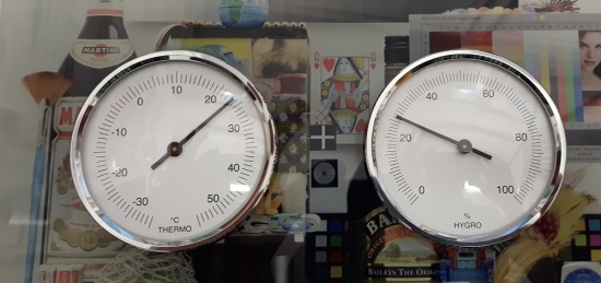 Thermo-Hygrometer auf einer Glasplatte