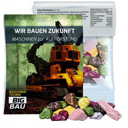 Midi-Tüte mit Werbereiter mit Kakao Kieselsteinen, ca. 15 g