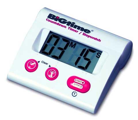Material: Kunststoff, großes Display, Farbe: weiß, inklusive Batterie, maximale Zeiteinstellung 99Min. und 59Sek., Größe 8x7cm.