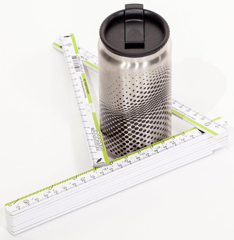 Material: Buchenholz, 2-in-1 Multitool mit Standard-Zollstock mit Metrologiekennzeichnung sowie EG-Baumusterprüfbescheinigung zur Messung von Längen auf der Vorderseite und Durchmesserangaben bis zu 12,5 Zoll und 33 cm auf der Rückseite, aus hochwertigem mit hochwertigen Federstahlgelenken, größere schwarze und rote Ziffern für noch bessere Ablesbarkeit auch an schwer einsichtigen Stellen und bei schlechten Lichtverhältnissen, 4C-Druck auf der Seitenfläche möglich.