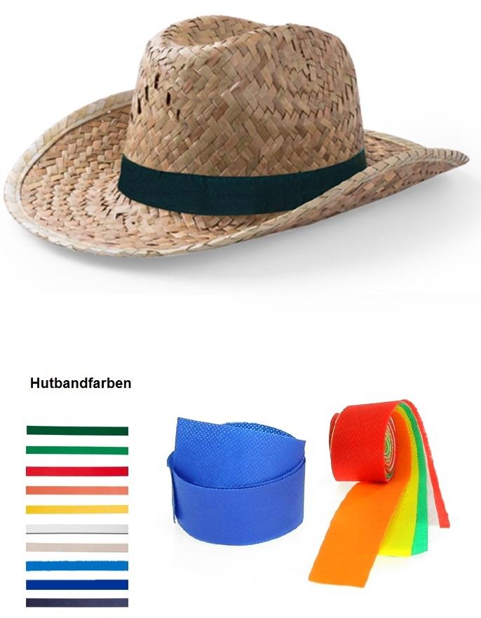unisex, mit Innenband, non woven Hutband in den Farben nach Pantone: weiß - grün 3450 - dunkelgrün 3435 - gelb 108 - rot 186 - orange 21 - marine 289 - royal reflex blue - hellblau - schwarz - weiß, Gewicht: 73g, nach der Bedruckung wird das Band an den Hut genäht, maximale Druckgröße 450x17mm.