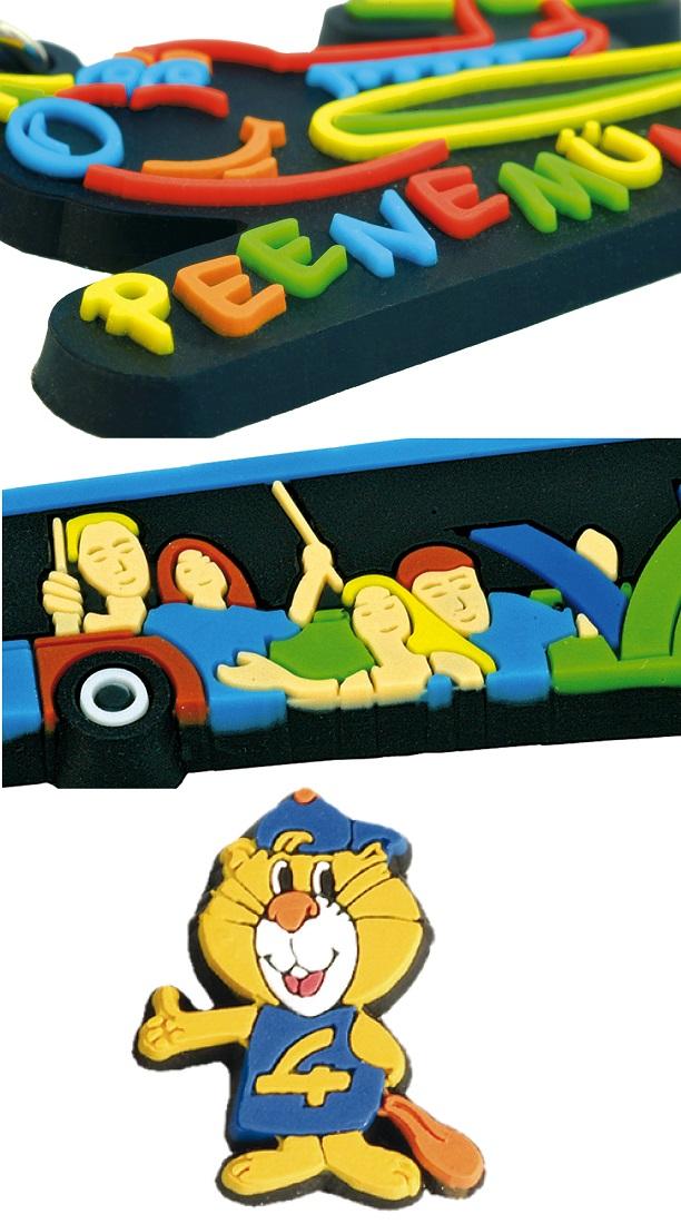 gummiertes Soft-PVC inklusive 4 Farben, die Farben sind durchgefärbt vergossen, Form beliebig [rund,eckig oder unregelmäßige Konturen], rückseitig vollflächiger Folienmagnet, einzeln im Polybeutel