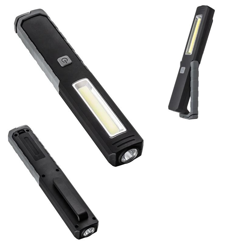 | Artikelbeschreibung: Ein handlicher Allrounder in Sachen Licht ist diese praktische Taschenlampe mit einem Magnet, einer Hängeschlaufe am klappbaren Henkel und einem Befestigungsclip für die Hemdtasche. Sie verfügt über ein seitlich angeordnetes COB-Licht (3 Watt, 160 Lumen) und eine LED-Leuchte (1 Watt, 60 Lumen), inklusive 3x AA Batterien, max. Druckfläche unterhalb des Power-Knopf 50x15mm. Die verfügbaren Techniken und Größenangaben der Individualisierung erläutern wir Ihnen sehr gern auf Anfrage. Staffelpreise*: |