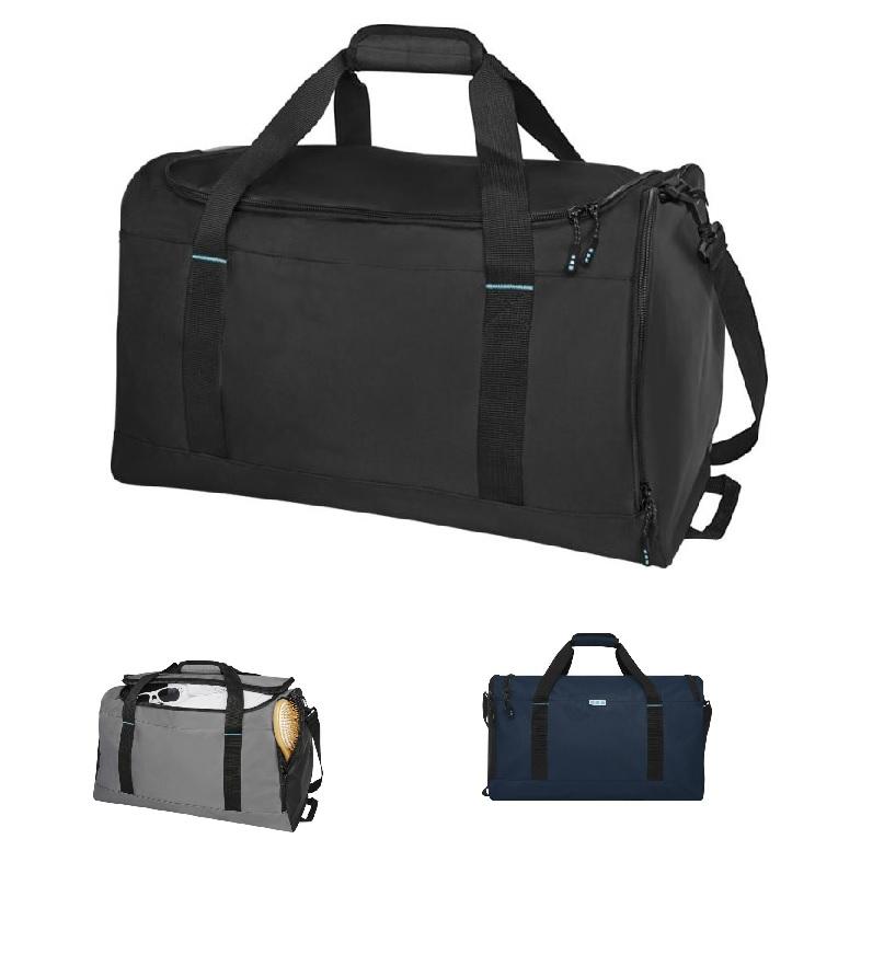 RPET-Seesack aus 55 % recycelten Materialien. Ausgestattet mit einem großen Hauptfach mit Reißverschluss, einer verstärkte Basisplatte, einer seitliche Netztasche und einer erweiterbaren Nass-/Trockentasche mit Reißverschluss. Kommt mit einer kleinen Innentasche mit Reißverschluss zur Organisation, einem abnehmbaren und gepolsterten Schultergurt, Haltegriffen mit gepolstertem Klettverschluss und einem zusätzlichen Haltegriff auf der rechten unteren Seite. 300D recyceltes Polyester. Farben: schwarz - grau - blau. 54x30x32cm / 40l Volumen. Maximale Druckfläche: auf der Seite 160x130mm oder oben 230x230mm, bis zu 4-farbig.