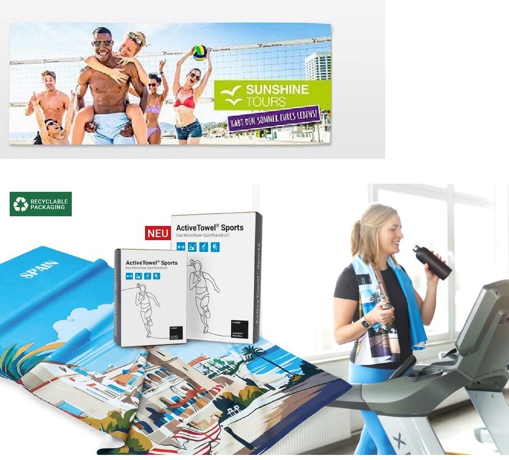 hochwertiges Fitness-Handtuch aus Mikrofaser P-9000® 80% Polyester - 20% Polyamid, Farbe: weiß, Größe: 180x70cm, inklusive Fotodruck vollflächig bei Anlieferung einer vektorisierten Druckdatei, einzeln in Faltschachteln mit individuell bedrucktem Schuber, inklusive der Drucknebenkosten