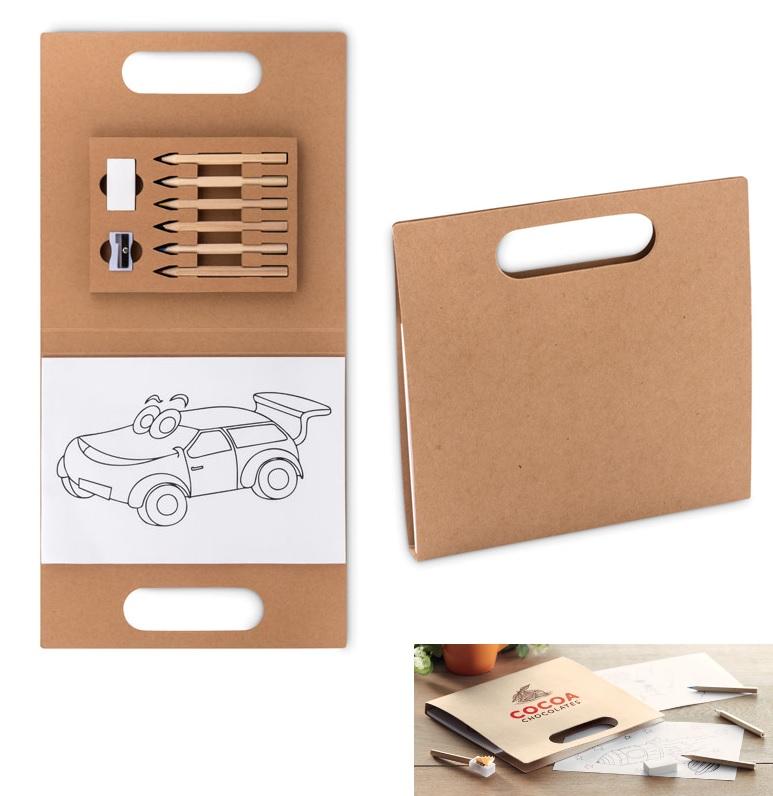 Block mit 30 Ausmalbögen mit 10 unterschiedlichen Motiven. Inkl. 6 Buntstiften, Spitzer aus Kunststoff und Radierer. Größe: 20x21x1,6cm, maximale Druckgröße: vorne digital 180x110mm oben, hinten digital100x80mm.