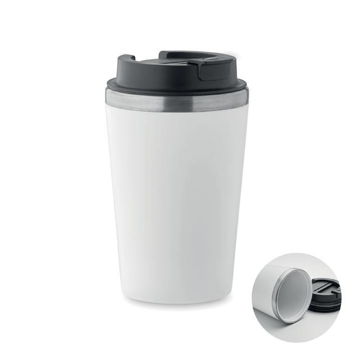 Doppelwandiger Trinkbecher. Äußere Schicht aus PP, Innenwand aus recyceltem Edelstahl (90 % recycelter Edelstahl und 10 % Edelstahl) mit keramischer Innenauskleidung. Auslaufsicher. Füllmenge: 350 ml.