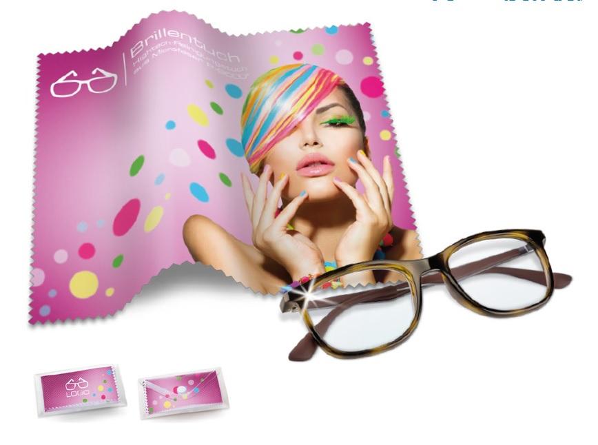 | Artikelbeschreibung: Hochwertige Tücher aus P-9000® Microfaser mit 4/0-farbigem Fotodruck, Größe: 18x15cm, mit Zickzack-Rand, vielseitig einsetzbar für Brillen und Optiken, Displays DVDs/CDx, DigiCam, in verschiedenen Größen verfügbar, optional Einzelverpackung, Preise auf Anfrage Die verfügbaren Techniken und Größenangaben der Individualisierung erläutern wir Ihnen sehr gern auf Anfrage. Staffelpreise*: |