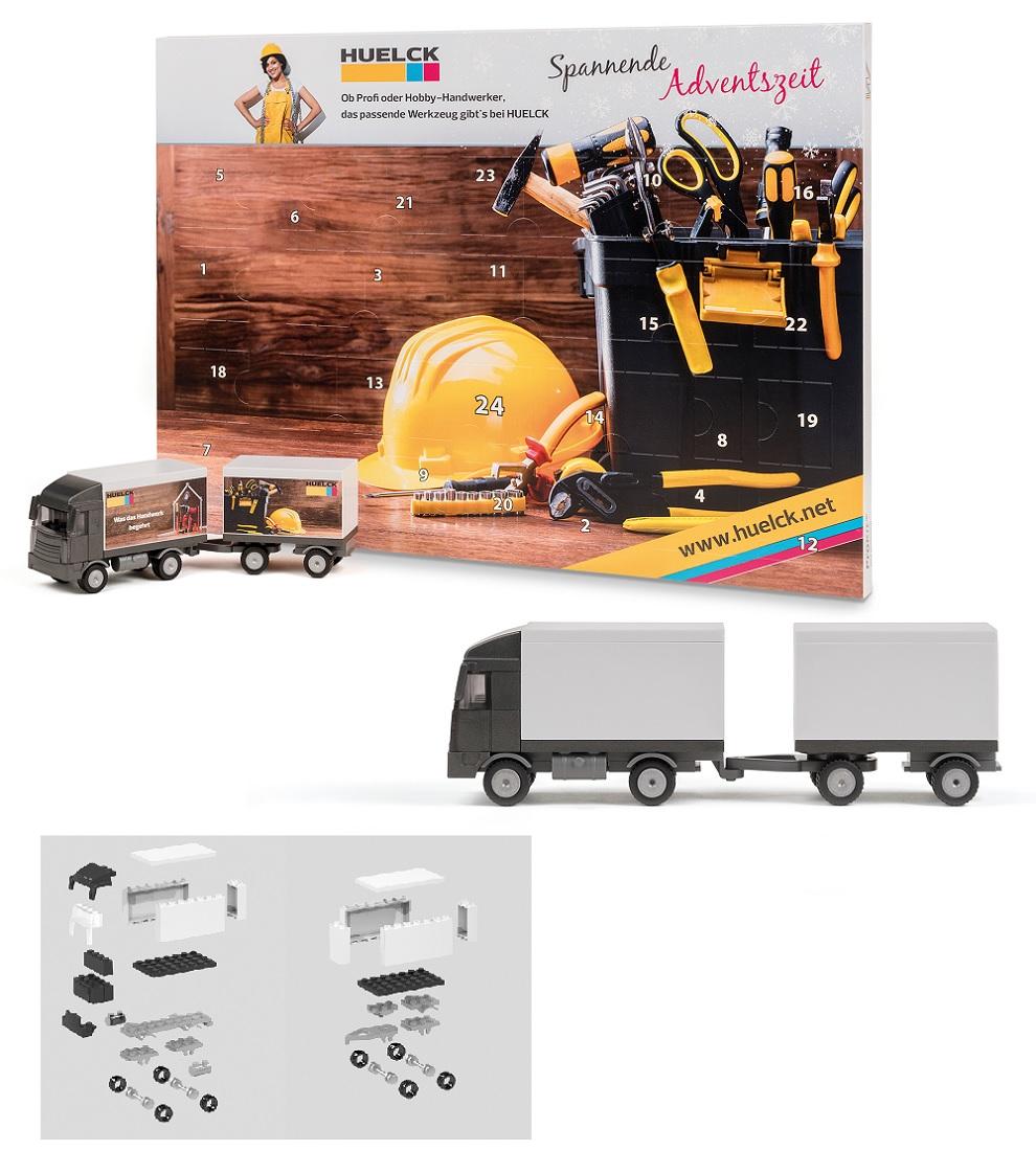 Artikelbezeichnung: Adventskalender gefüllt mit LKW Bauteilen mit Anhänger