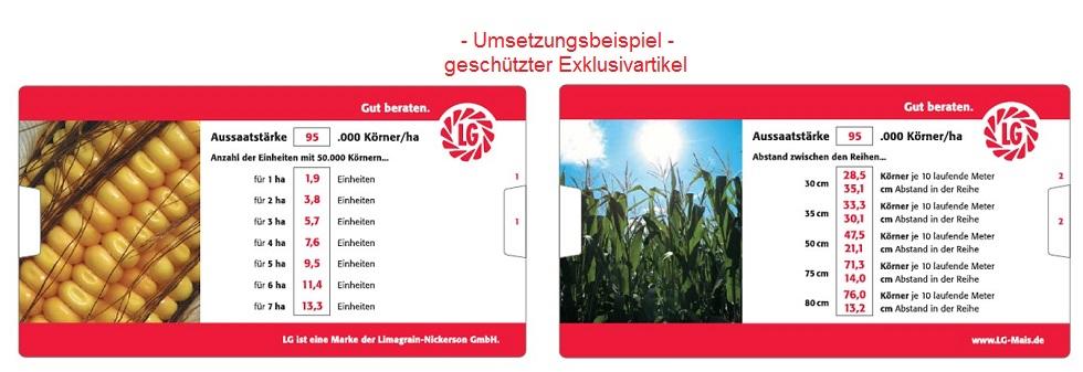 | Artikelbeschreibung: Mit dem Datenschieber berechnen Sie die Einheiten der Saatgutkörner, die Sie pro Hektar benötigen und die Pflanzabstände für die einzelnen Saatgutkörner. Größe ca. 14,1x7,6cm, beidseitig bedruckte Karte zum schieben sowie beidseitig bedruckte Hülle aus stabilem Kunststoff klar. Es handelt sich hierbei um das Umsetzungsbeispiel eines geschützten Exklusivartikels. Auf Anfrage entwickeln wir einen individuell auf Ihre Bedürfnisse abgestimmten Rechner Mindestbestellmenge 1.000 Stück, Preise auf Anfrage. Auch umsetzbar als: - Datenschieber Milchgewinnung - Datenschieber für Mähdrescher - Abdrehprobe - Kartoffelmeter (Potatometer) Die verfügbaren Techniken und Größenangaben der Individualisierung erläutern wir Ihnen sehr gern auf Anfrage. Staffelpreise*: |