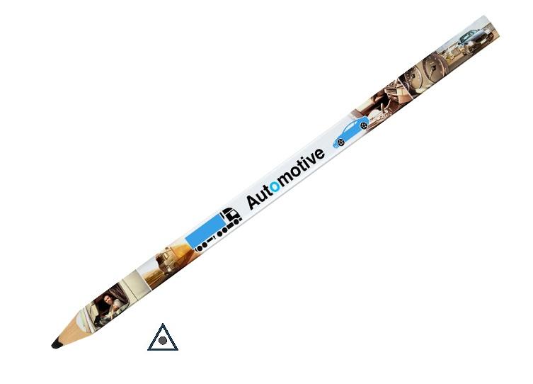 240mm lang, Form: dreieckig, Mine HB, gespitzt, Lackierung Standardfarbe: weiß, Druckgröße: vollflächig, Digitaldruck