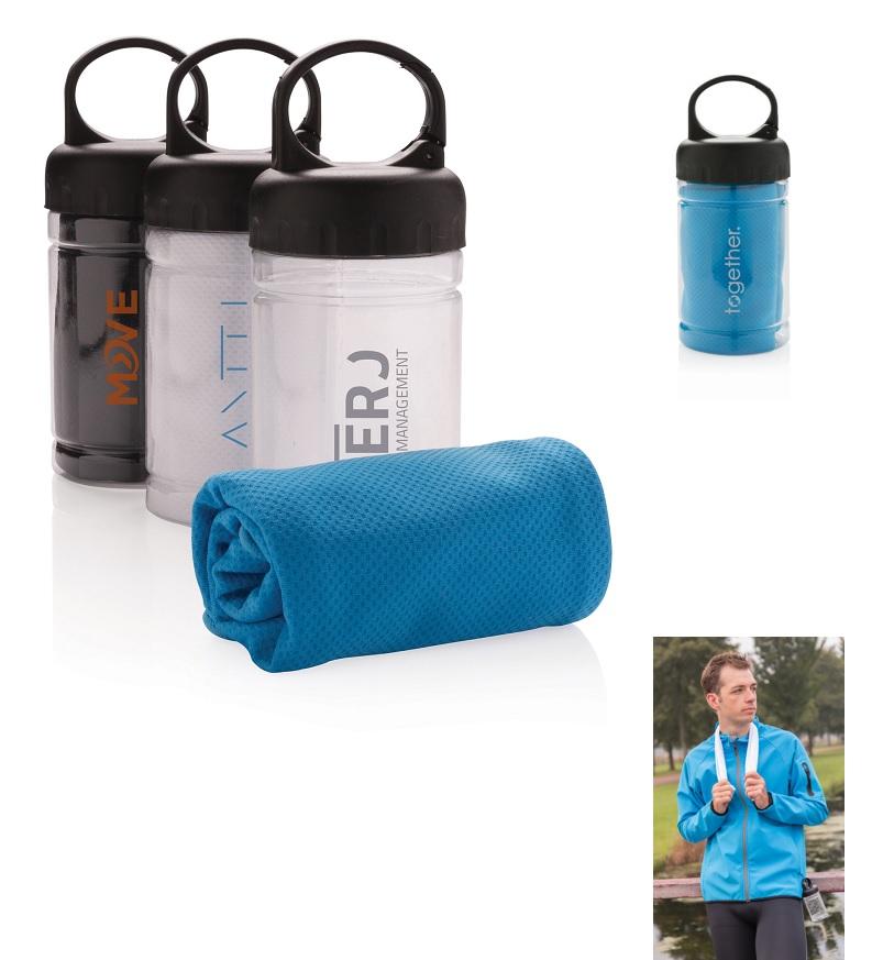 | Artikelbeschreibung: Mikrofaser Kühlhandtuch einfach etwas kühles Wasser zum Handtuch in die Dose geben und fertig ist die Erfrischung, Größe des Handtuch: 77x30cm, Flasche aus PP - der Deckel aus ABS - Griff mit Karabinerfunktion, Größe 17,3x6,5cm, lieferbare Tuchfarben: blau - schwarz - weiß, maximale Druckfläche auf dem Behälter: 190x45mm - max. 1-farbig, Druck 150x100mm oder Stick 90x90mm auf dem Kühltuch möglich. Ab 50 Stück, Preise auf Anfrage Die verfügbaren Techniken und Größenangaben der Individualisierung erläutern wir Ihnen sehr gern auf Anfrage. Staffelpreise*: |