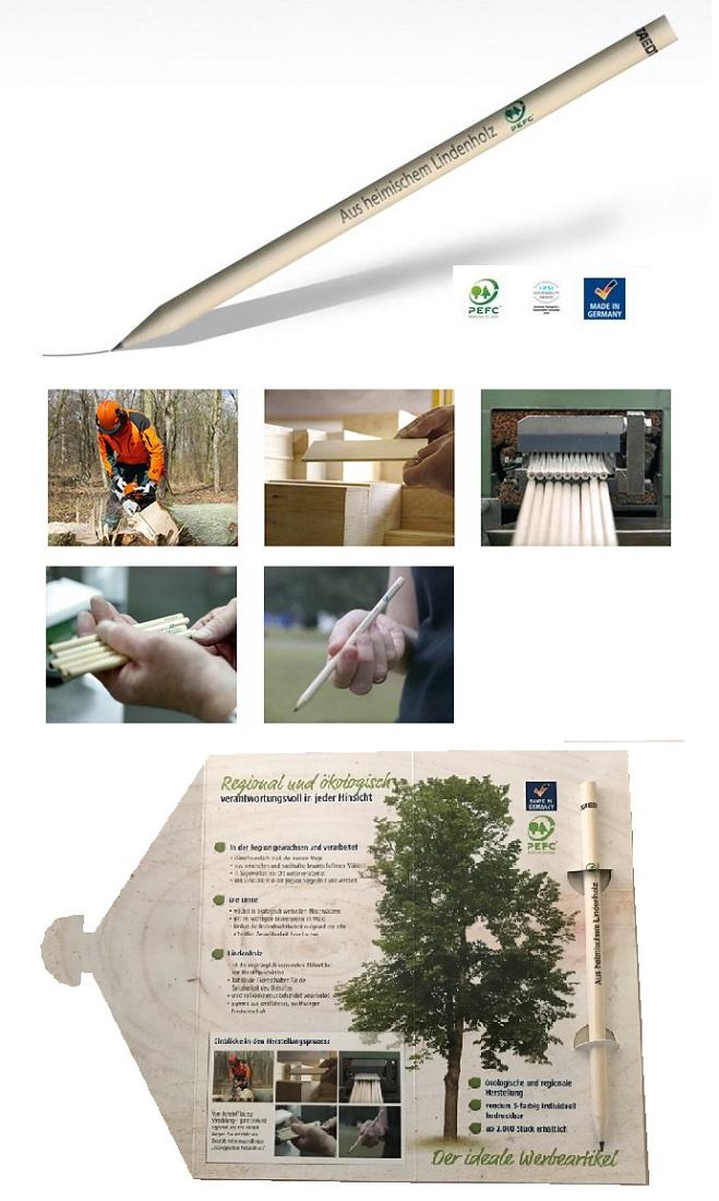 | Artikelbeschreibung: aus heimischen und nachhaltig bewirtschafteten Wäldern, in Sägewerken vor Ort weiterverarbeitet, wird vollkommen unbehandelt verarbeitet, 17,5cm lang, rund, gespitzt, inklusive Staedtler Logo, Größe der Karte: 21x28cm, inklusive 1-farbigem Druck auf dem Stift, inklusive beidseitigem 4C Alloverdruck auf der Karte, maximale Druckgröße: auf dem Bleistift 135x21mm, auf der Karte Mindestbestellmenge 2000 Stück Die verfügbaren Techniken und Größenangaben der Individualisierung erläutern wir Ihnen sehr gern auf Anfrage. Staffelpreise*: |